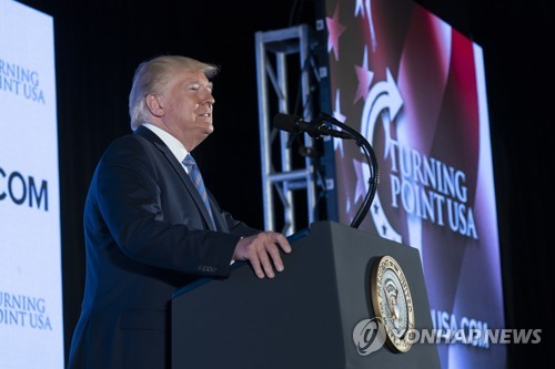 US President Donald J. Trump makes remarks at Turning Point USA?s Teen Student Action Summit 2019 (TSAS), Washington, DC, USA, 23 July 2019. TSAS takes place from 22 to 25 July with some 1000 student invited to attend. EPA/Chris Kleponis / POOL