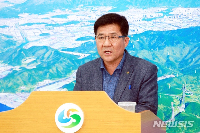 【창원=뉴시스】 강경국 기자 = 황규종 경남 창원시 문화관광국장이 24일 창원시청 프레스센터에서 기자회견을 열고 이순신 장군 타워 건립안 추진 계획에 대해 설명하고 있다. 2019.07.24. (사진=창원시청 제공)