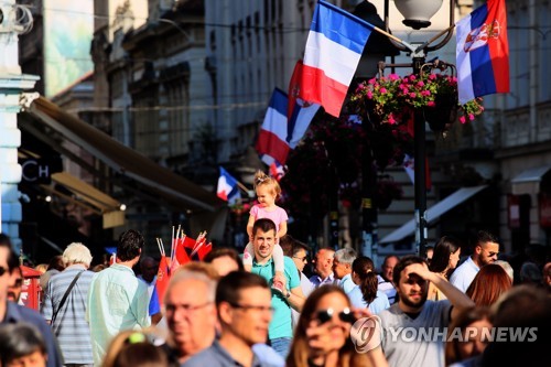 Serbian people gather to welcome French President Emmanuel Macron as he arrives in Belgrade, Serbia, 15 July 2019. President Macron is on a two-day state visit to Serbia. EPA/KOCA SULEJMANOVIC