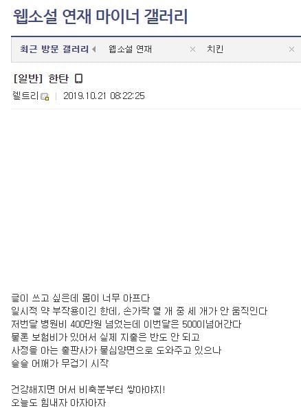 작가는 독자들을 위해 아프더라도 글을 쓰겠다고 약속했었고